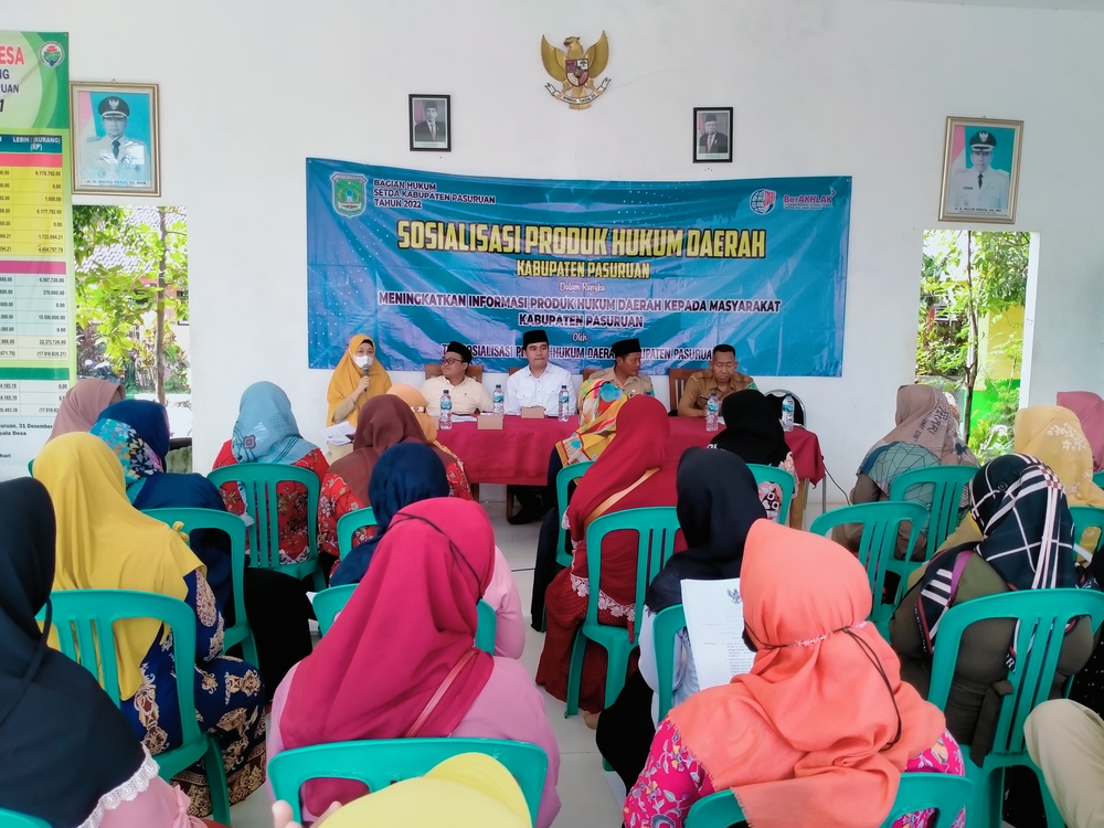 Kabupaten Pasuruan – Pada hari Senin tanggal 21 November 2022 bertempat di Balai Desa Asemkandang Kecamatan Kraton Kabupaten Pasuruan, Pemerintah Kabupaten Pasuruan melalui Bagian Hukum Sekretariat Daerah Kabupaten Pasuruan melakukan Kegiatan Sosialisasi Produk Hukum Daerah.